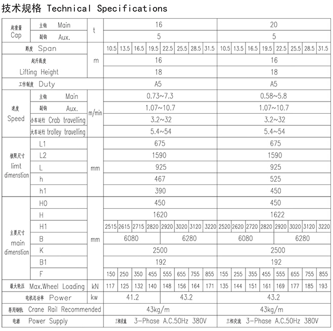 16~20t歐式吊鉤橋式起重機