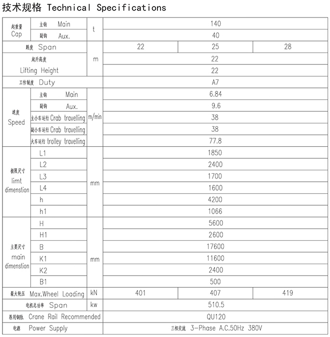YZ型140、40t鑄造起(qǐ)重機