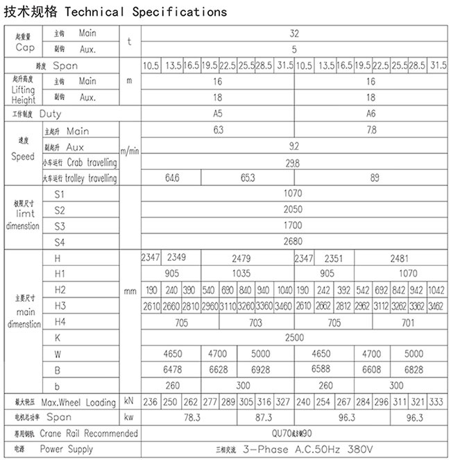 QD型32、5t吊鉤橋式起重機